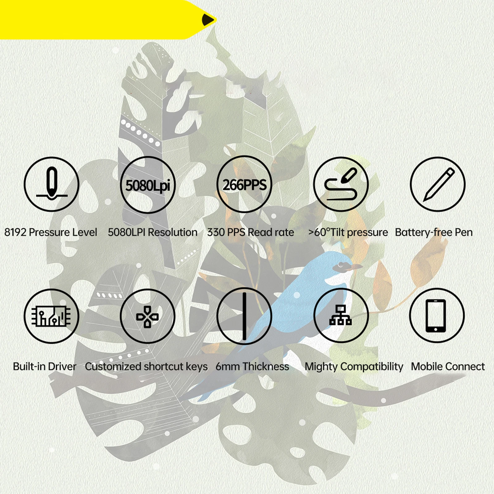 With a reading speed of 330 PPS (Points Per Second), this tablet can track your movements with high accuracy and minimal delay.